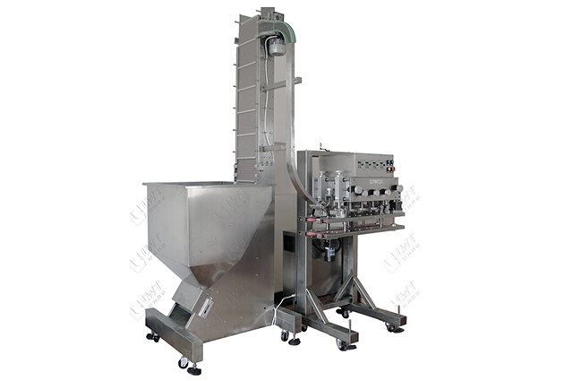 旋蓋:全自動旋蓋機具有自動理蓋、上蓋、旋蓋功能。瓶子直線進入、連續旋蓋、快捷。