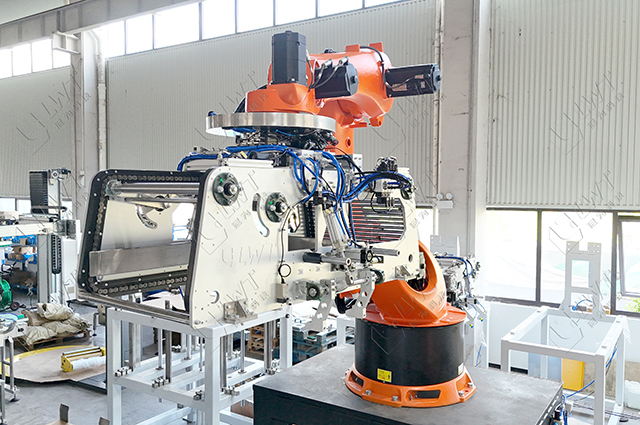 對碼垛后的產(chǎn)品進(jìn)行纏繞,增強(qiáng)穩(wěn)固性。