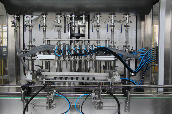 在灌裝大規格時,料槽補料不足,造成液位不穩定,可加大補料量或重新關小灌料頭上方球閥,重新設定灌裝時間(加長灌料時間)減慢灌裝速度去解決。