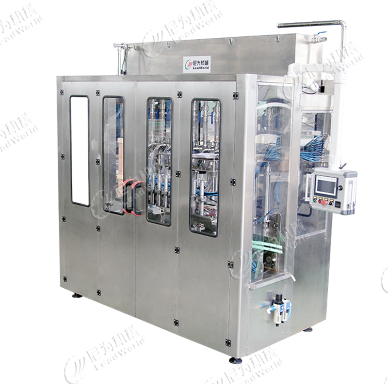 飲料灌裝機則是在瓶中壓力小于大氣壓力下進行的灌裝,適合各種粘度的液體,比如油類、糖漿、果酒等都可以適用這種灌裝。